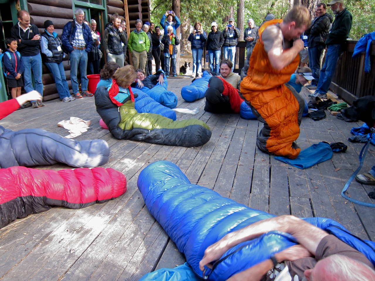 The sleeping bag speed stuffing event during the Hiker Olympics. Anish won the event and eventually the gold.