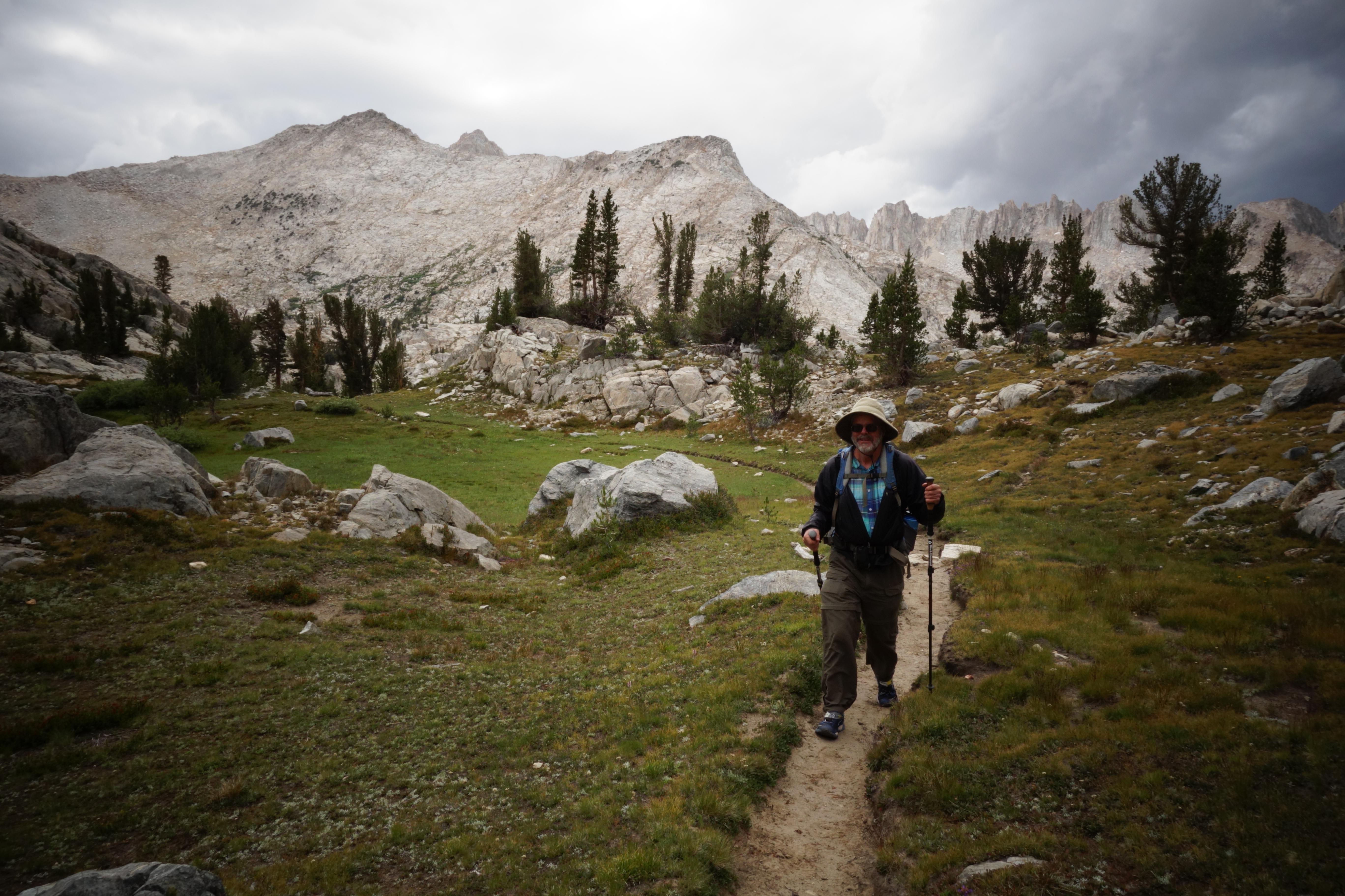 The other weather worth mentioning was that I saw the start of a tornado. Directly above our heads at Seven Gables Lakes a thunderhead had a spot that started swirling. It was a tight little whirl. Beautiful and stunning. But oh, thank goodness that it dissipated and never dropped a twister. Don’t know what I would have done if it had.