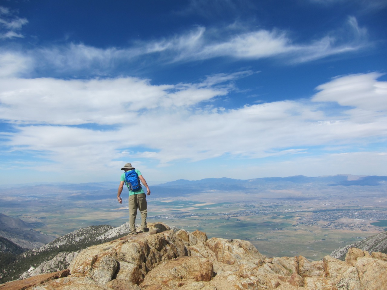 From Job’s Sister, looking down into Nevada. Tahoe, big and blue out to the left. A seemingly volcanic column of smoke from a wildfire out behind us in the west.
