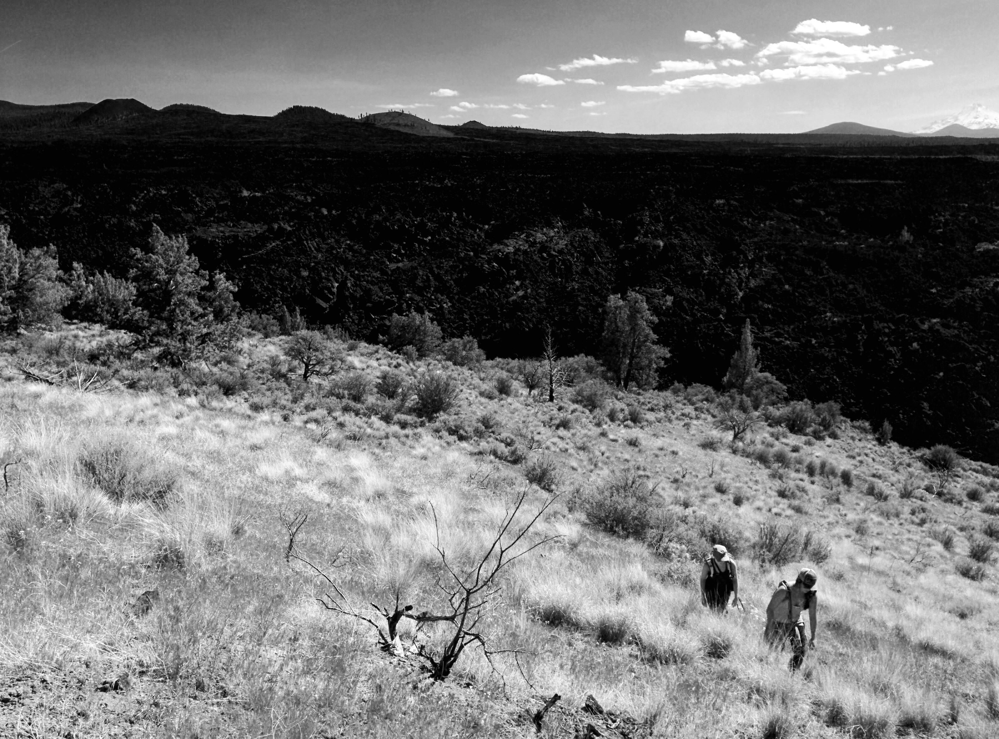 We: looked for shooting stars, ate well, went in caves, walked the battlefield of the Modoc War, sat at a fire lookout, hiked to a butte and lava field, drank, saw petroglyphs and the pacific flyway, napped in hammocks, visited small towns and drove the back roads onto a shield volcano to walk a pumice and obsidian flow and sit at a lake.